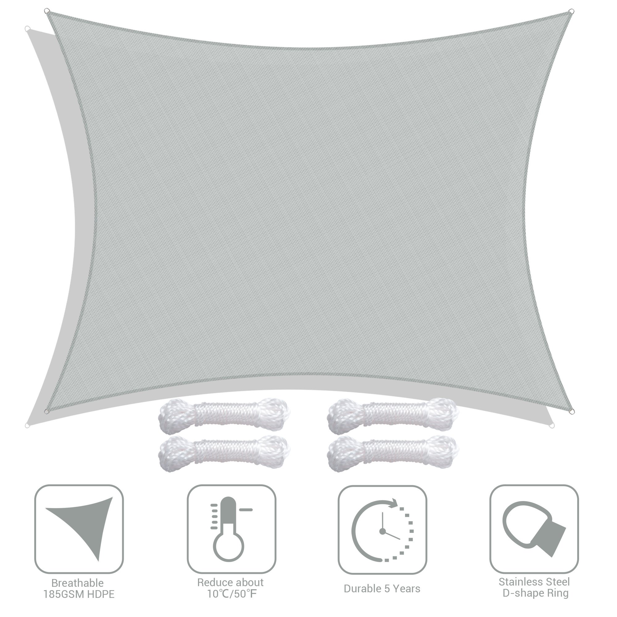 - HDPE Reduces Heat Transfer - Made by 100% brand new 185GSM HDPE material to efficiently reduce the temperature under sail about 50°F (10°C), excellent breathability to allow breeze to pass through, offers a cool and airy shelter on hot days